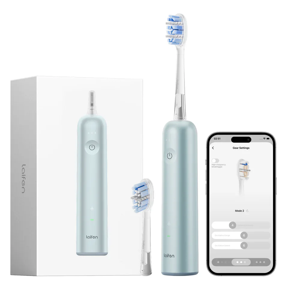 Via de Laifen app heb je volledige controle over jouw poetsroutine. Je kunt de trillingsfrequentie en de zwaaihoek van de borstel in 10 verschillende niveaus instellen. Hierdoor maak je de tandenborstel volledig persoonlijk. Of je nu kiest voor een zachte verzorging of een krachtige reiniging, de app onthoudt jouw voorkeuren voor de volgende keer.