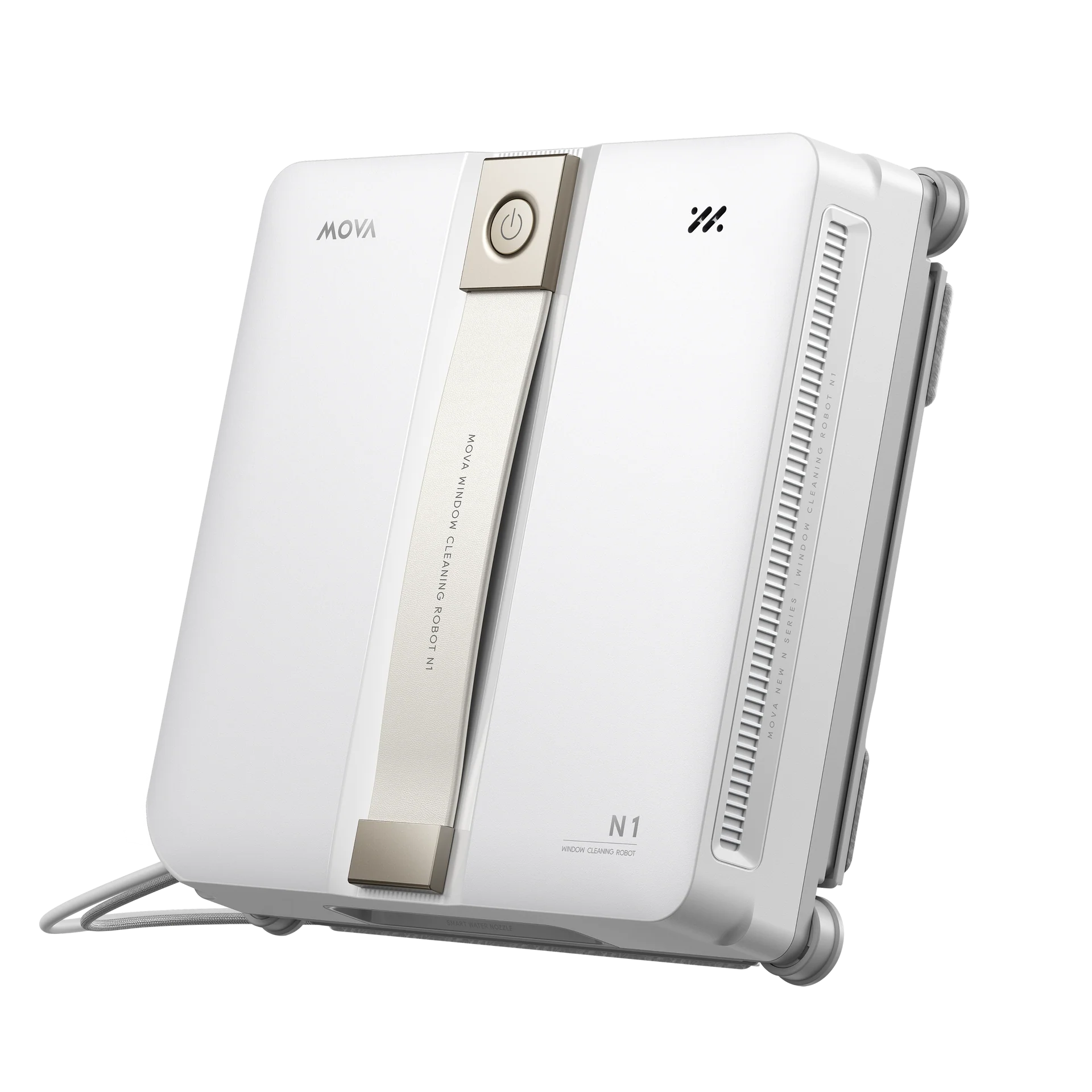 De Mova N1 Window Cleaner onderscheidt zich door een zeer slank en compact ontwerp.Hierdoor kan de robot ook onder rolluiken of achter tralies zijn werk goed doen.Bovendien bevat het systeem een interne accu die bij stroomuitval dertig minuten blijft werken.Deze noodvoorziening voorkomt dat de robot onverwacht van het raam valt.Daarnaast zorgt het stevige veiligheidskoord voor een extra laag bescherming tijdens gebruik op hoogte.