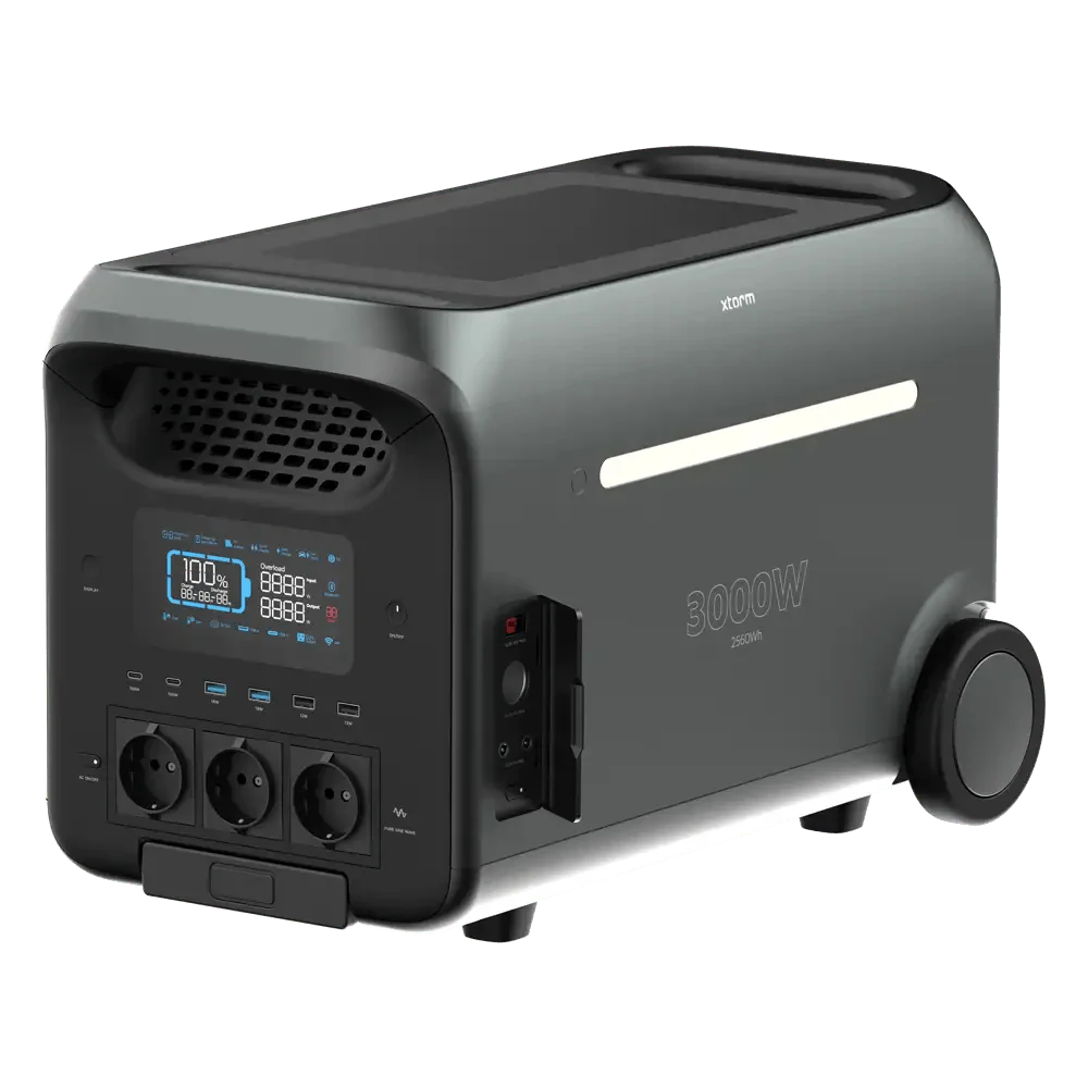 Xtorm Smart Power Station 3000W voor een uiterst krachtige energieoplossing. Deze powerhouse is ontworpen voor zware off-grid behoeften en betrouwbare back-up tijdens stroomstoringen. Omdat je over een capaciteit van 2560Wh beschikt, gebruik je moeiteloos grotere apparaten zoals koelkasten en kookplaten. Dankzij de slimme app-bediening behoud je overal de volledige controle over je stroomverbruik. De rubberen wielen en uitschuifbare handgreep maken het transport van dit zware toestel bovendien erg eenvoudig.
